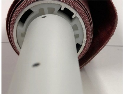 8. Insert 5V motor into the aluminum tube by aligning keyways in the crown & drive wheel to the tube. See the image above for reference.